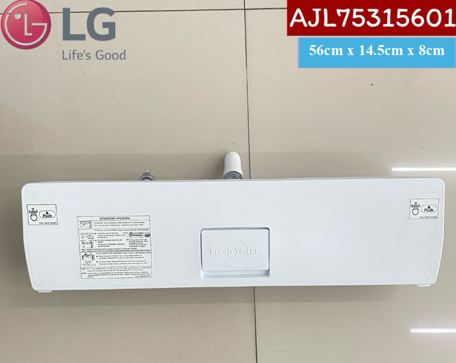 Bình chứa nước sử dụng cho tủ lạnh LG GN-D372, GN-D392 Hàng mới 100% - Hàng chính hãng Bình chứa nước gồm 3 bộ phận như sau: - Nắp bình chứa: 56cm x 14.5cm x