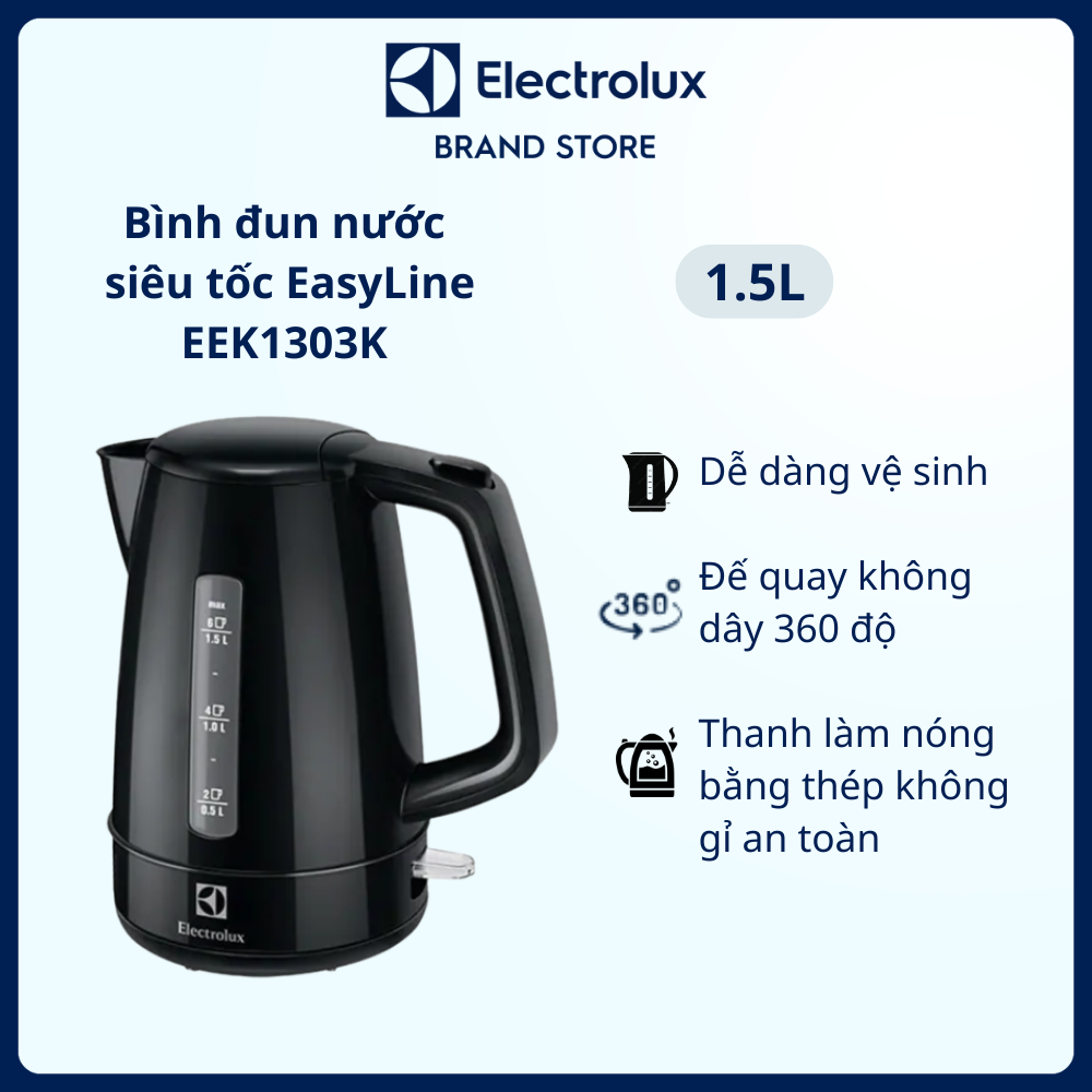 ✨Bình đun nước siêu tốc Electrolux 1,5L EEK1303K - Dễ dàng vệ sinh, an toàn khi sử dụng - Bảo hành 2 năm toàn quốc [Hàng chính hãng]