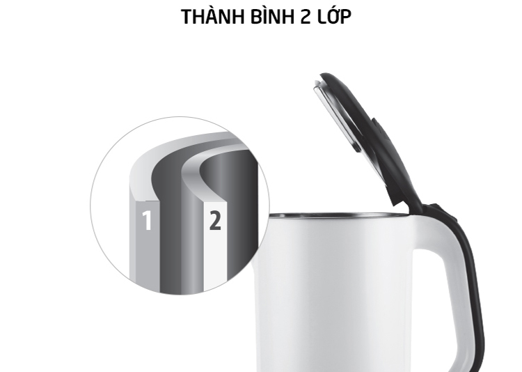 Bình đun Lock&Lock ẸK738WHT được cấu tạo 2 lớp thành bình chắc chắn giúp giữ ấm lâu hơn và bảo vệ tay khỏi bỏng khi chạm vào với độ bền cao tạo được tuổi thọ lâu dài cho thiết bị. Và mâm nhiệt bằng chất liệu Inox cứng cáp, không gỉ sét, giúp hấp thu nhiệt nhanh, hạn chế rò rỉ điện đảm bảo an toàn khi sử dụng.