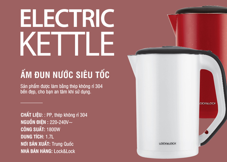 Bình đun siêu tốc Lock&Lock được thiết kế với khóa nắp an toàn cùng tay cầm cách nhiệt chắc chắn đảm bảo sự an toàn tuyệt đối cho người sử dụng. Ngoài ra, còn có đèn hiển thị khi nấu cùng với khả năng tự ngắt điện khi kết thúc chương trình giúp bạn thuận tiện với việc kiểm soát bình đun khi nấu.