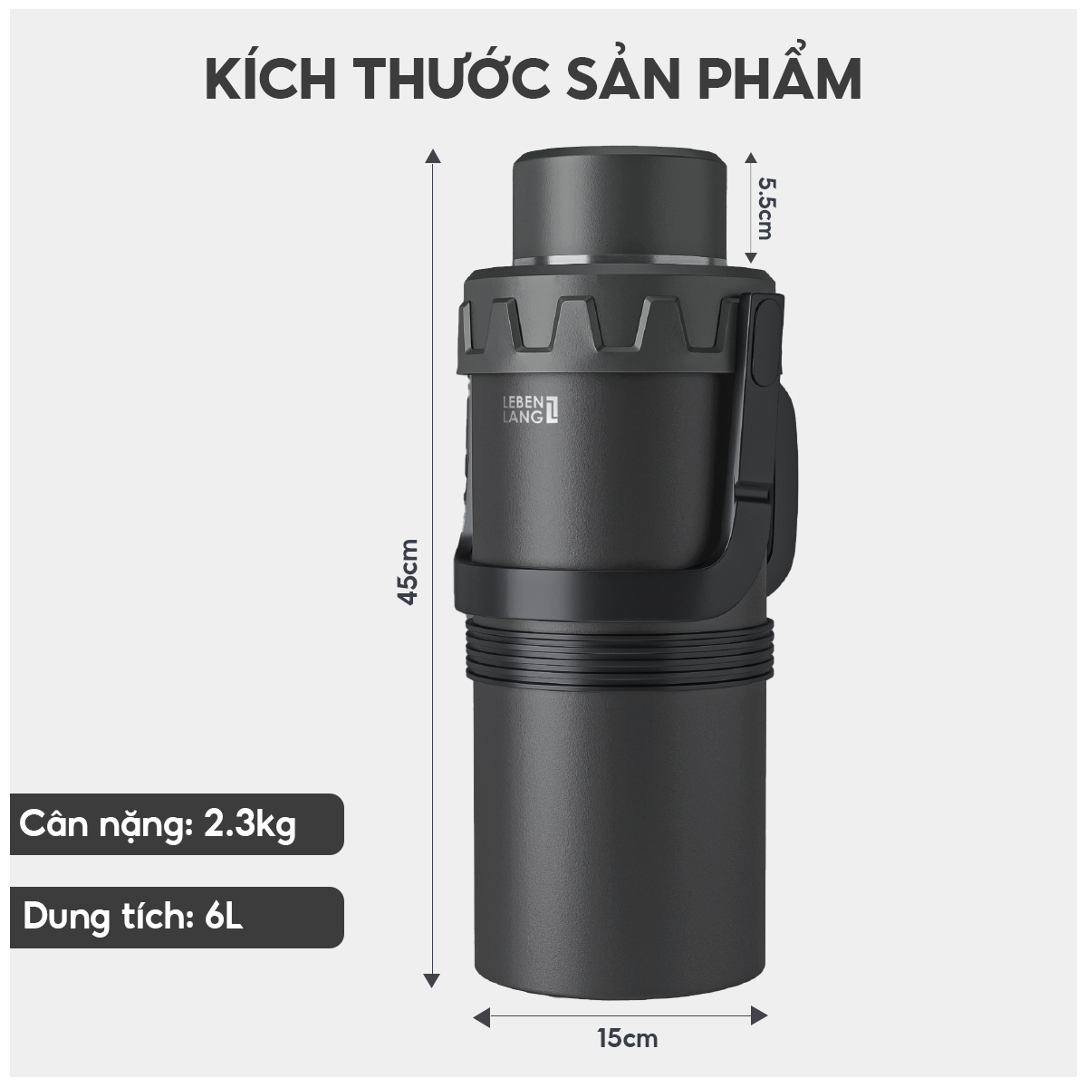Bình giữ nhiệt Lebenlang LBL3025, phích giữ nhiệt dung tích 6L, inox 316, có lõi lọc, quai cầm tiện lợi - hàng chính hãng