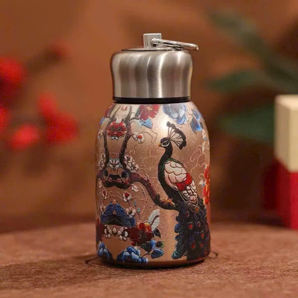 Bình Giữ Nhiệt Mini Con Công Sang Chảnh 300ml Lõi Inox Cao Cấp - Giữ Nhiệt Lâu, Dùng Đi Học Đi Làm