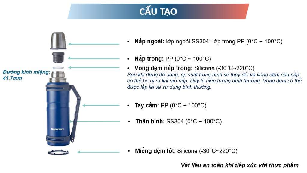 • Nắp trong có gioăng bằng silicone giúp giữ kín hơi, hạn chế rò rỉ chất lỏng ra ngoài