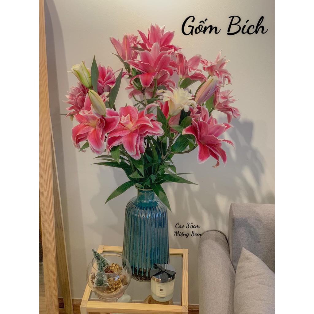 Lọ hoa gốm sứ Bát Tràng cao cấp men hoả biến Cao 30cm Lọ này cắm hoa cực xinh Cắm đc cả đào , tuyết mai giá 650k Màu : xanh ngọc, xanh coban