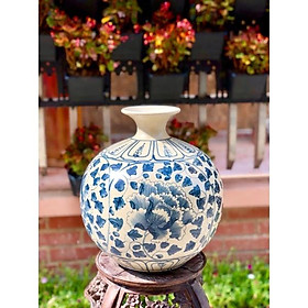 Bình hút tài lộc Bát Tràng Hoa Sen Phú Quý Vẽ Vàng BL14