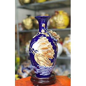 Bình hút tài lộc gốm sứ Bát Tràng Thuận Buồm Xuôi Gió Kích thước: cao 22cm rộng 20cm Chất liệu: gốm sứ Xuất xứ: Bát Tràng Hoa văn: họa tiết Thuận Buồm Xuôi Gió đắp