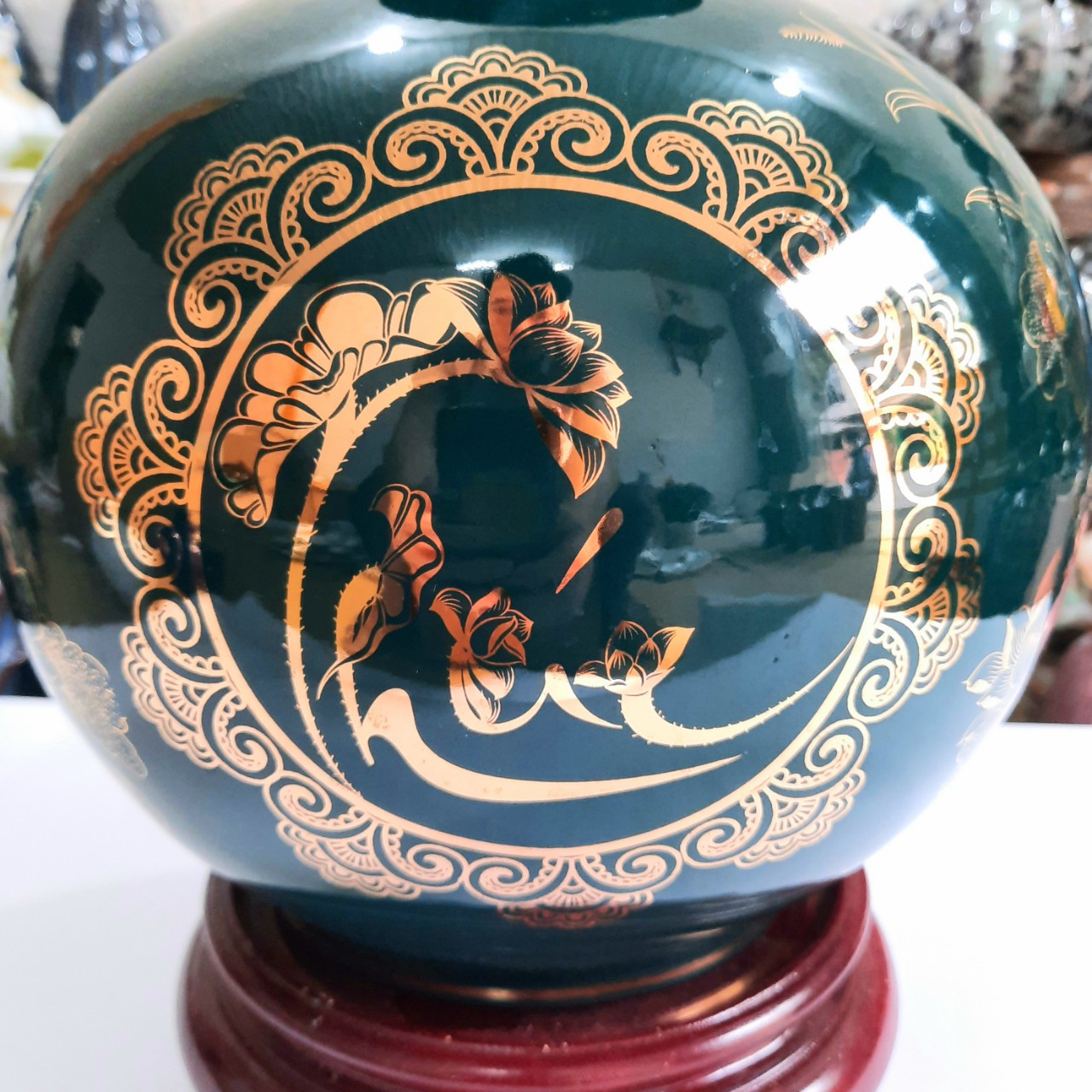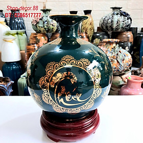 Bình hút tài lộc thuận buồm xuôi gió vẽ vàng 18k men xanh vân đá H25, H30 cm gốm sứ Bát Tràng tặng kèm đế gỗ - NHẤT MỆNH - NHÌ VẬN - TAM PHONG