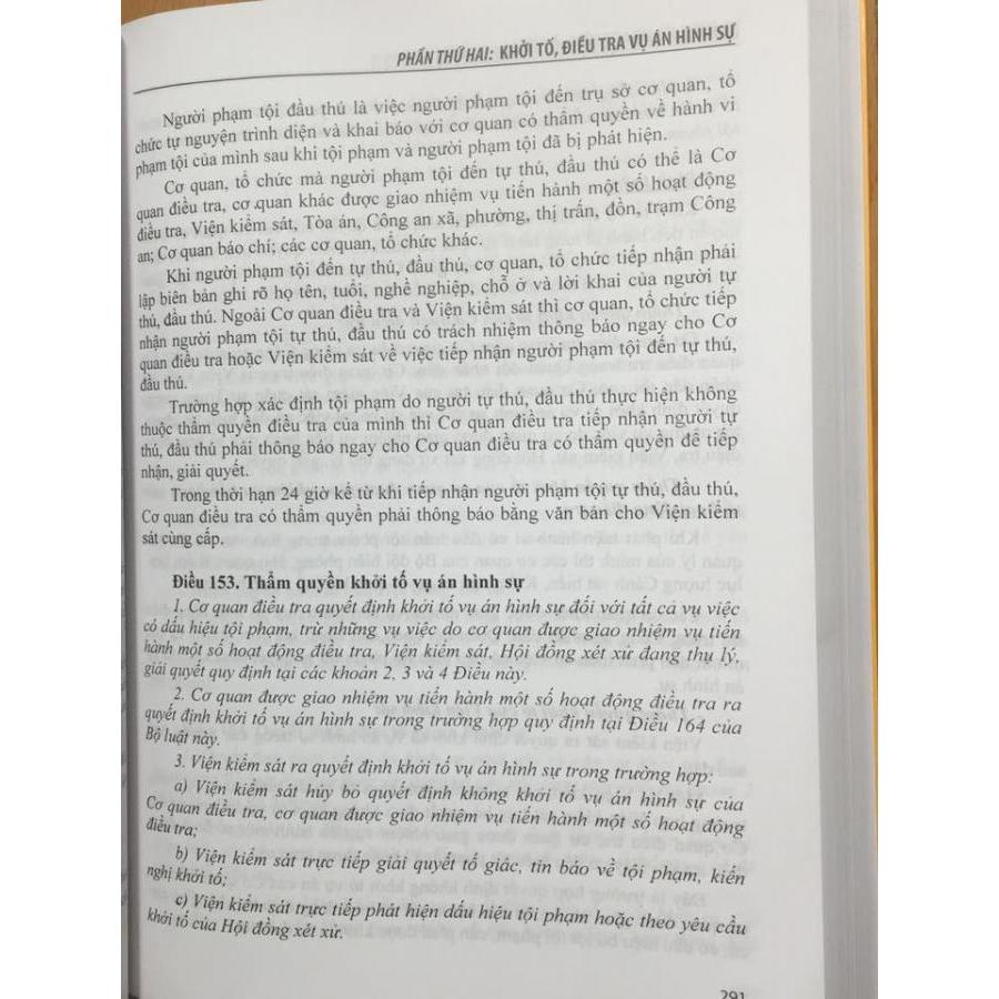 Cuốn sách gồm 9 phần, 510 điều, quy định trình tự, thủ tục tiếp nhận, giải quyết nguồn tin về tội phạm, khởi tố, điều tra, truy tố, xét xử và một số thủ tục