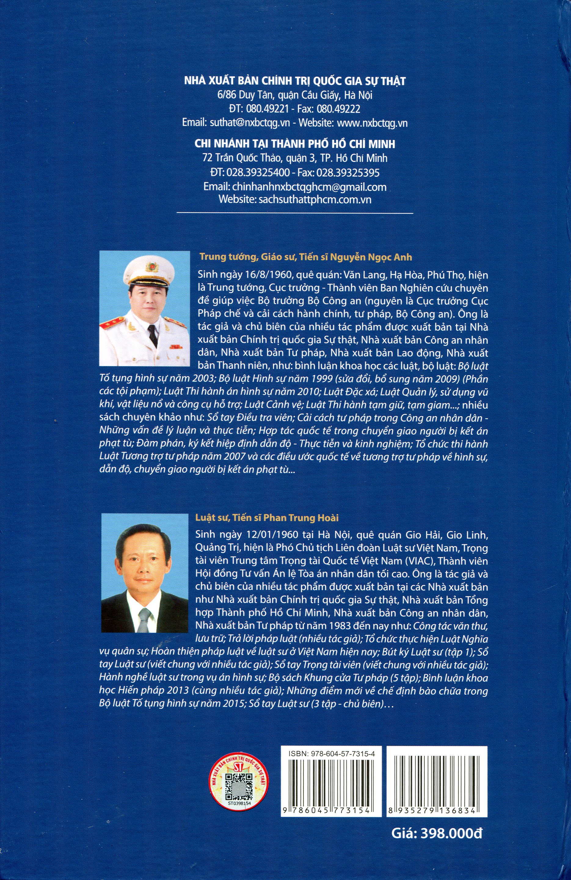 Hỏi - đáp luật tố tụng hình sự năm 2015 Tác giả: TS Phạm Thị Thoa - Học viện cảnh sát nhân dân (Chủ biên) NXB công an nhân dân  Khổ 14,5 x 20,5 cm,