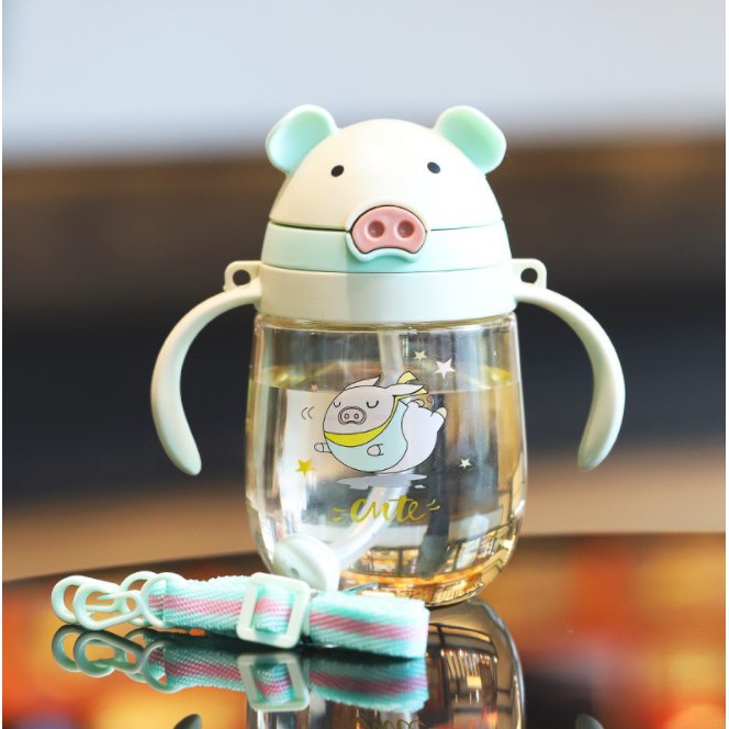 Bình Nước Có Ống Hút Cho Bé Tập Uống Có Van Chống Sặc Hình Vương Niệm Cao Cấp 300ml Bằng Nhựa PP Chịu Nhiệt Tốt Có Tay Cầm Tiện Lợi - Hàng Loại 1 -