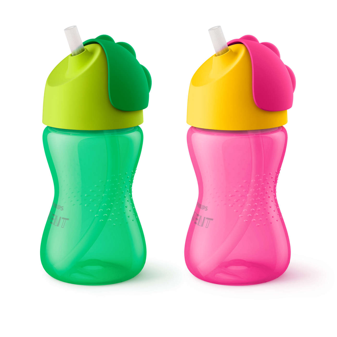 Ống hút cong để bé có thể uống đến giọt cuối cùng thiết ké van chống rồ rỉ và nắp lật mở giúp tránh bị rò rỉ nước ít phụ kiện dễ lắp ráp vả