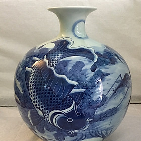 ✨Bình thu tài lộc men lam vẽ cảnh cá chép trông trăng