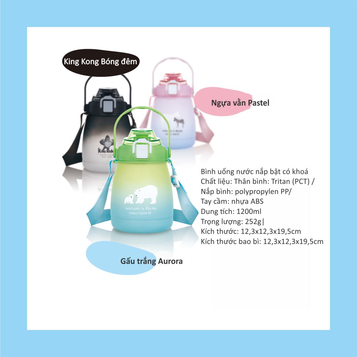 ✨BÌNH UỐNG NƯỚC CÓ ỐNG HÚT CHO BÉ BẰNG NHỰA TRITAN KU5622 - 1200ML