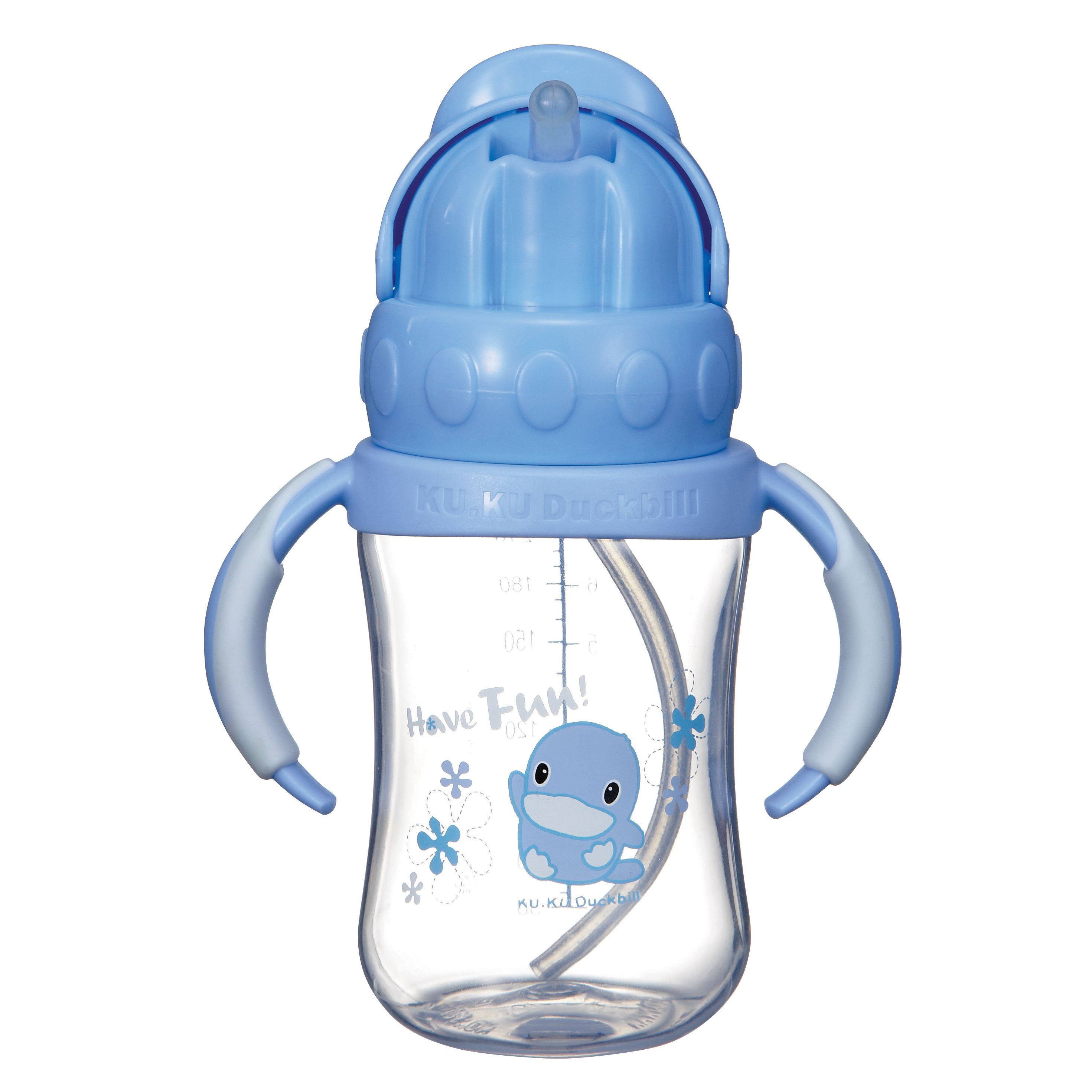 Bình Uống Nước Có Tay Cầm Nhựa PP KuKu KU5925 thiết kế tay cầm có lớp đệm chống trơn trượt giúp bé tự cầm chắc bình và hút nước, sữa dễ dàng. Bình trang trí hình vịt con đáng yêu tạo sự hứng thú cho bé khi sử dụng. Nắp đậy của bình chỉ cần gạt nhẹ để lộ đầu ống hút cho bé hút dễ dàng.