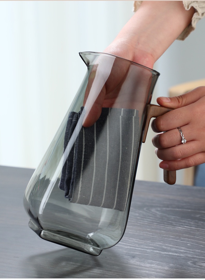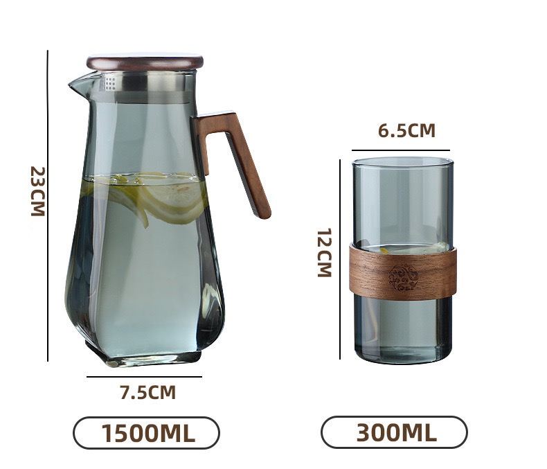 Cung cấp đủ nước cho cơ thể trong 1 ngày là điều rất cần thiết, uống đủ nước sẽ giúp cơ thể đào thải nhiều độc tố, giúp các khớp hoạt động tốt hơn, và tim mạch tốt hơn và cho làn da tươi đẹp hơn... Vì vậy chọn lựa bình nước cũng rất cần thiết, shop xin giới thiệu 1 chiếc bình có thể cung cấp đủ nước thường ngày cho bạn. Chiếc bình thủy tinh màu xám nắp gỗ và tay cầm gỗ sang trọng là lựa chọn phù hợp với nhiều gia đình. Thiết kế miệng bình rộng có thể dễ dàng để thức ăn hay đá vào, và vệ sinh nhanh chóng dễ dàng. Ngoài bình thì đi kèm là 1 chiếc ly xinh xắn, thân ly được quấn bởi 1 miếng nhựa nhìn vào lạ mắt và sang trọng. Thích hợp uống nước, trà trái cây, nước trà và nhiều đồ uống khác...