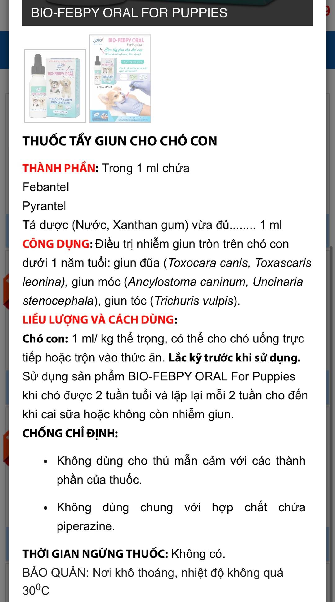 ✨Bio Febpy Oral uống xổ giun trên chó con