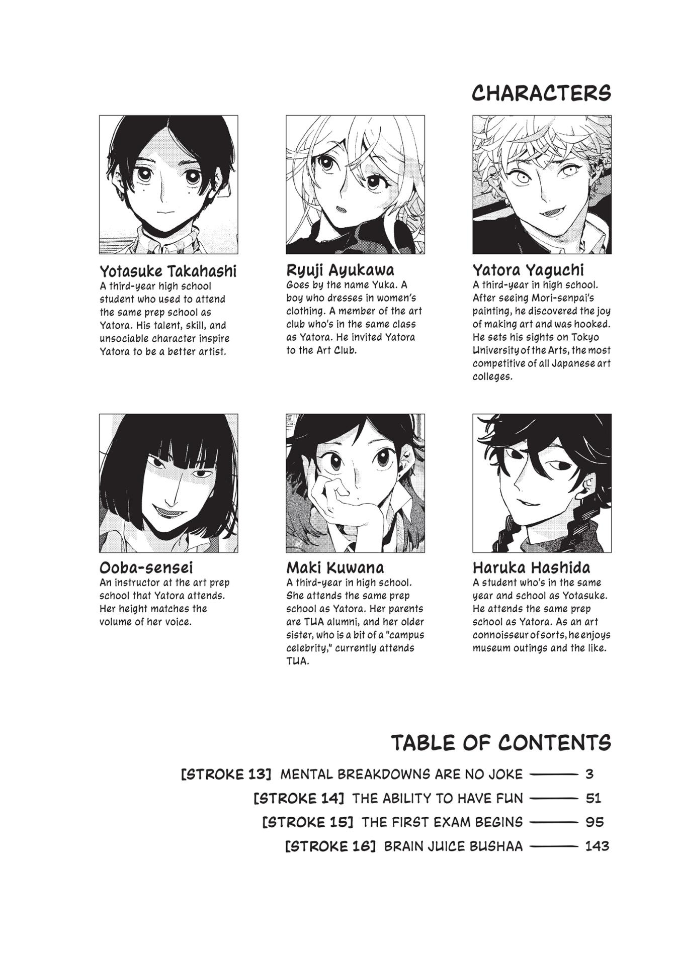 Yatora now has new materials in his tool box and a wider range of expression under his belt. But a week before the first exam, Ooba-sensei says he’s missing a crucial edge… With so much at stake, Yatora’s self-doubt brings him lower than ever before. Still, he has his fire, his resilience—and he might just get a lucky break, too.