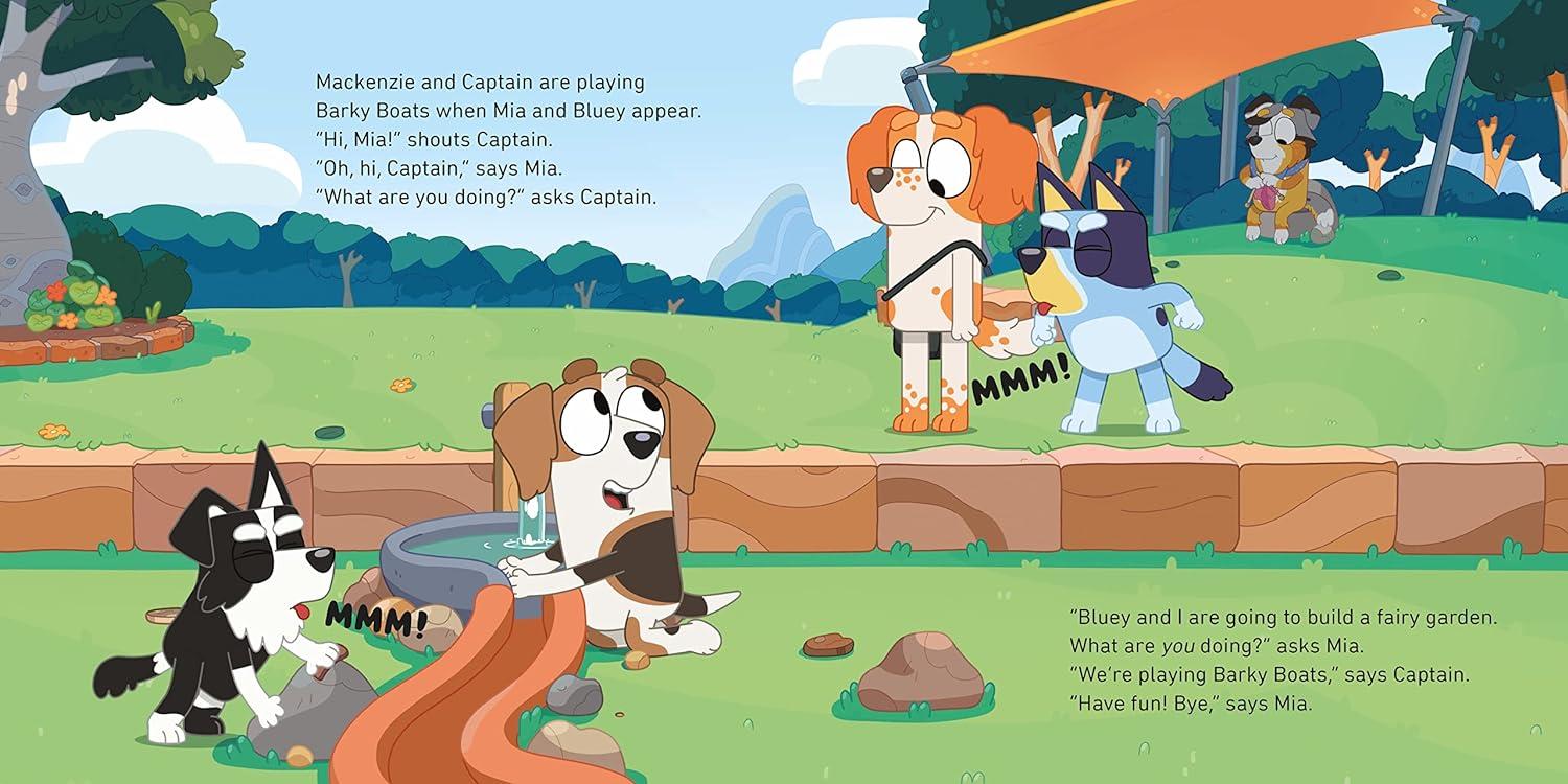 Bluey and Mackenzie are spending the day with their buddies. They're excited to play Barky Boats and build a fairy garden! Their buddies Mia and Captain seem distracted - will they still have time to play with Bluey and Mackenzie?