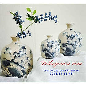 Mua tại TiktokBộ 03 bình hút tài lộc Bát Tràng men rạn vẽ hoa các mẫu