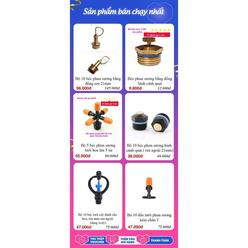 ✨Bộ 10 béc phun sương bằng đồng nguyên chất hình cánh quạt ( ren ngoài 21mm) bán kính lên tới 6-8 mét 206789