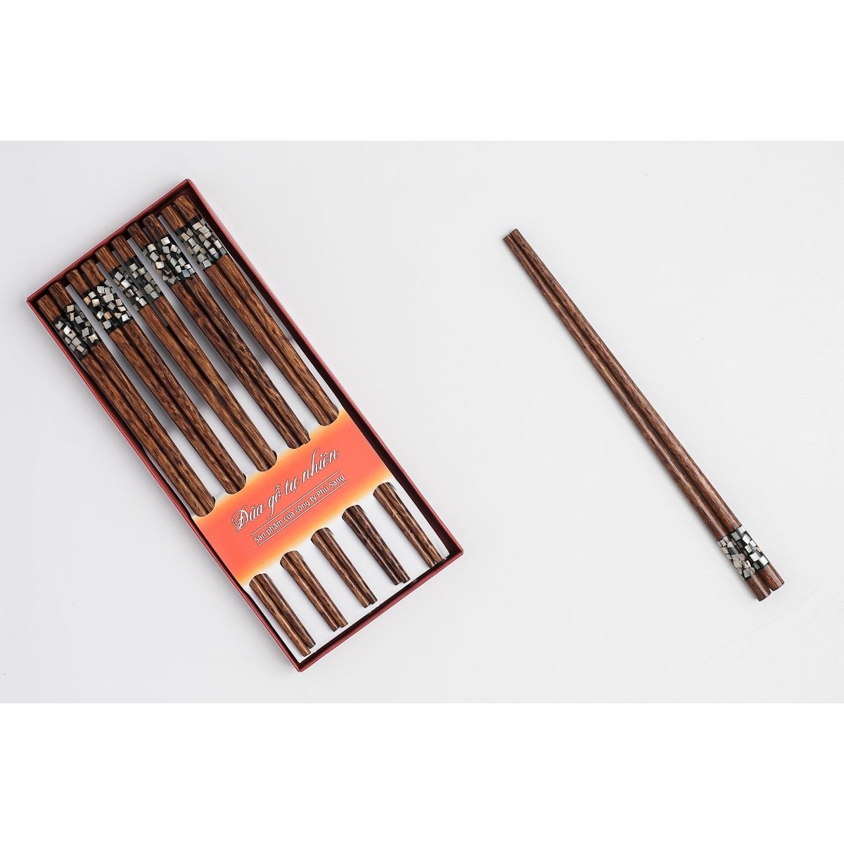 Đũa gỗ tự nhiên siêu sạch xuất Hàn Quốc - Gỗ Trắc khảm xà cừ Mô tả sản phẩm: - Mã Số: CTH101 (đũa tròn) - Số lượng: 10 đôi trong hộp. - Kích thước: