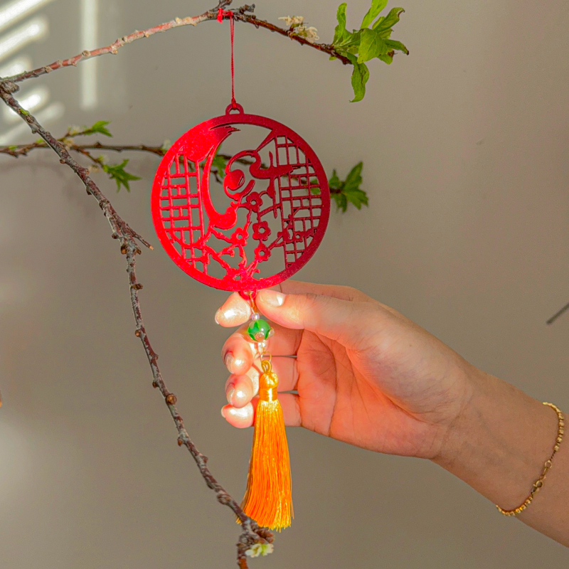 DÂY TREO TRANG TRÍ TẾT - GỖ KHẮC CNC ĐỎ SON Thấy hoa mai, hoa đào là thấy Tết. Cây hoa Tết nhà bạn năm nay sẽ đặc biệt hơn khi được trang trí bằng