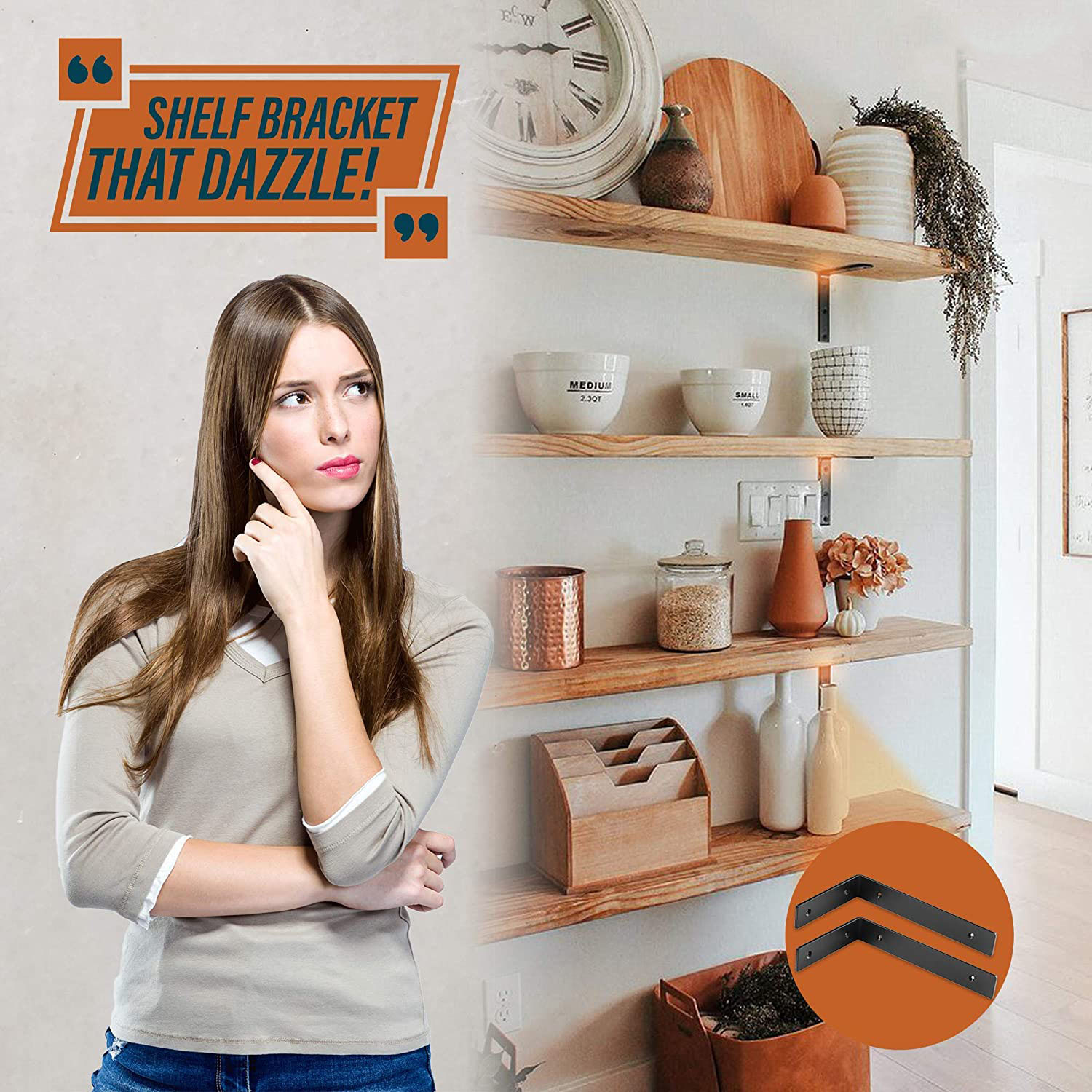 Với bộ giá đỡ treo tường chữ L, mọi việc thật dể dàng để có được trang trí theo ý muốn.