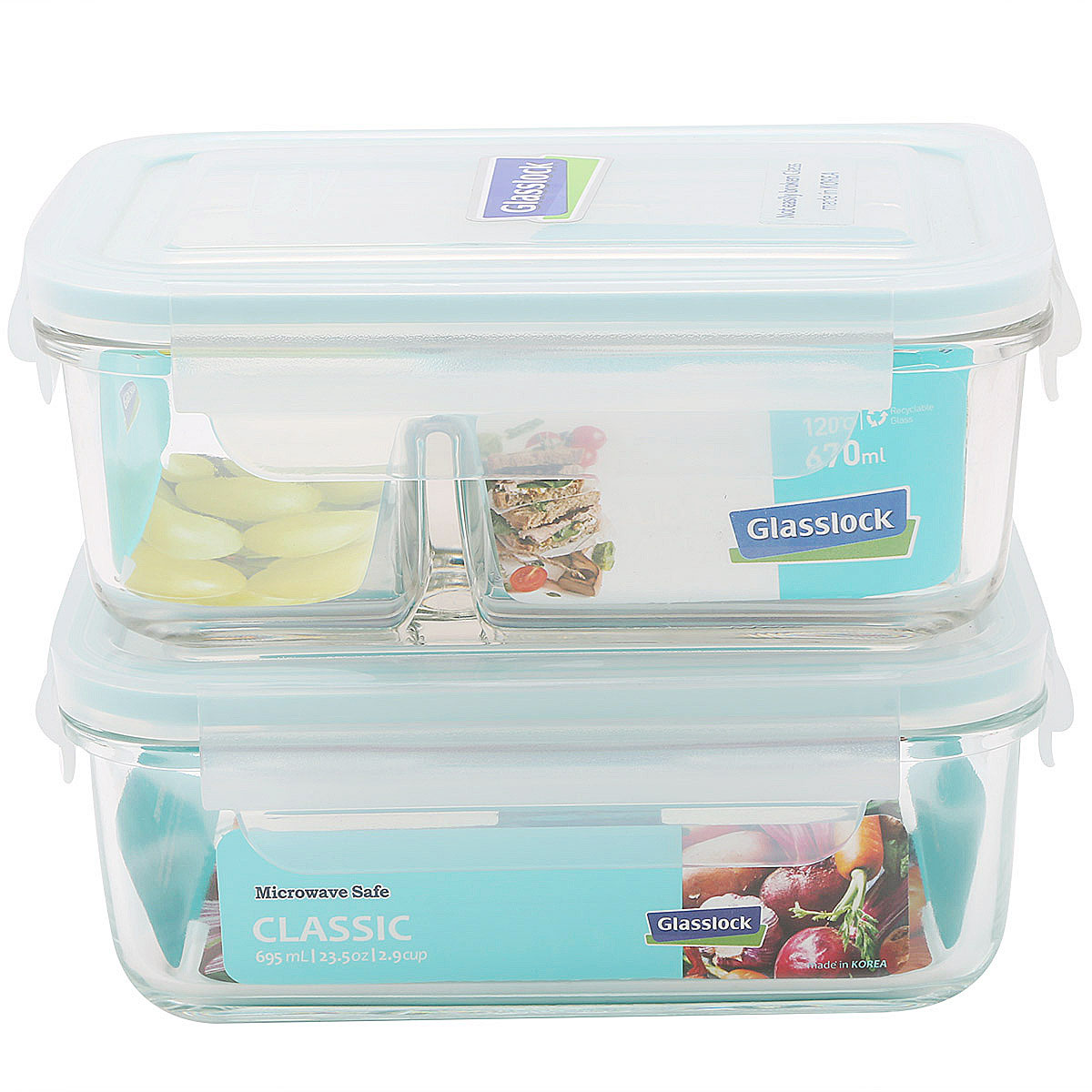 ✨Bộ 2 Hộp Thủy Tinh Cường Lực Chia Ngăn Glasslock 670ml Và 715ml + Túi Giữ Nhiệt