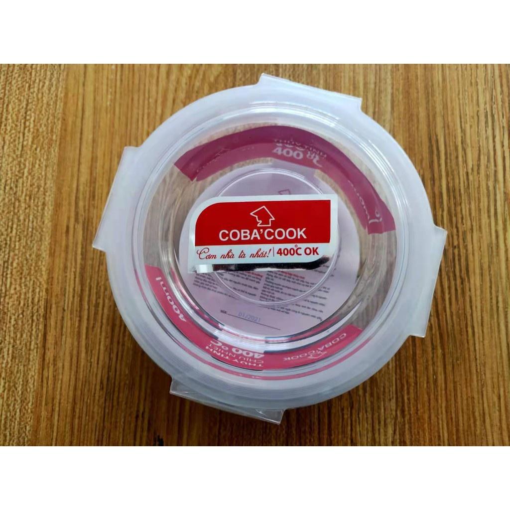Bộ 2 hộp thủy tinh đựng thực phẩm chịu nhiệt COBA'COOK hình tròn dung tích 400ml - CCR42-1