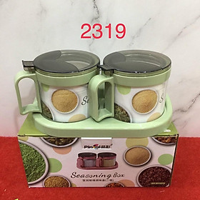 ✨Bộ 2 hũ đựng gia vị thủy tinh Seasoning cao cấp có khay ( giao ngẫu nhiên )