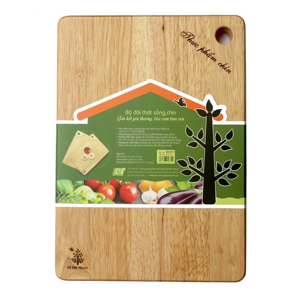 Bộ 2 thớt sống chín Đức Thành được làm từ gỗ đã qua xử lý loại bỏ các tạp chất, chống mối, mọt. Thớt được thiết kế với bề mặt gỗ láng mịn, thuận tiện cho việc sử dụng cắt, thái thực phẩm, đồng thời giúp bạn dễ dàng hơn trong việc vệ sinh sản phẩm sau khi dùng. Bộ 2 thớt gỗ dùng cho thực phẩm sống và chín Đức Thành 05331 có diện tích bề mặt rộng tạo sự thoải mái cho người sử dụng.