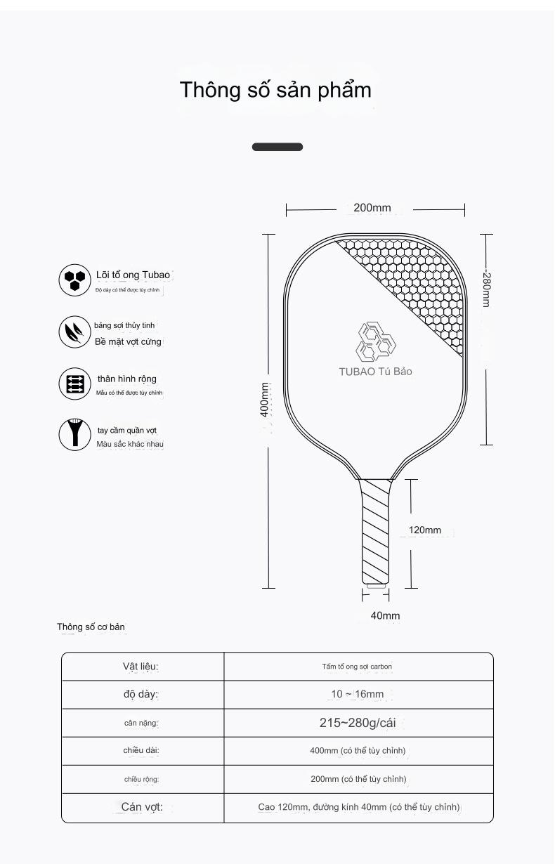 *ĐẶC ĐIỂM CỦA VỢT PICKLEBALL TUBAO CAO CẤP.