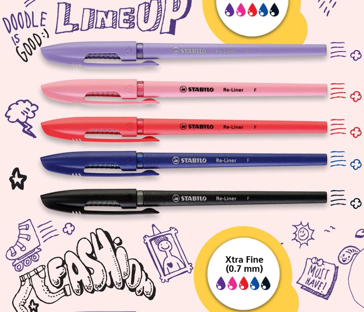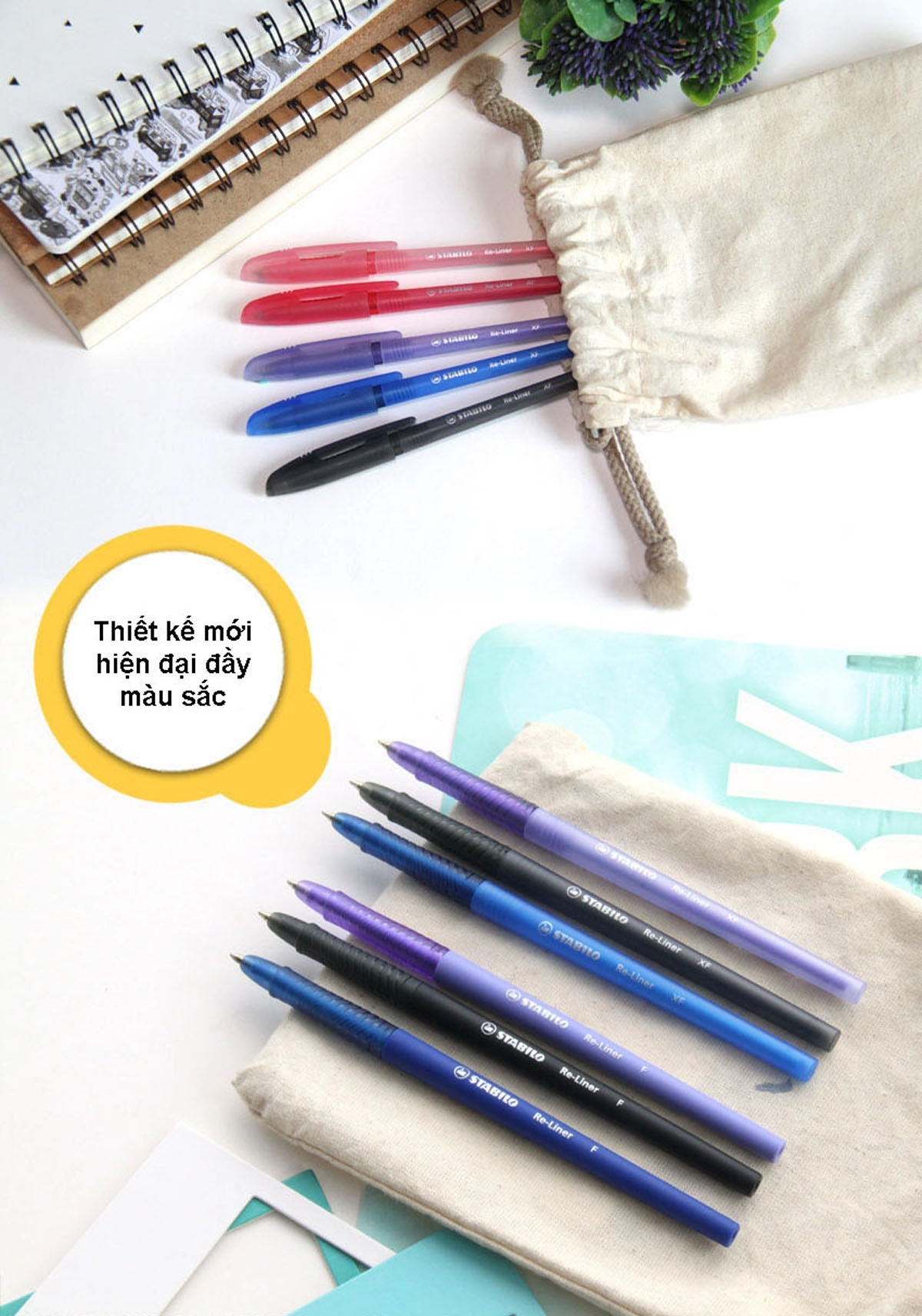 ✨Bộ 3 Bút bi nắp STABILO Re-Liner F 0.7mm (BP868F-C3)