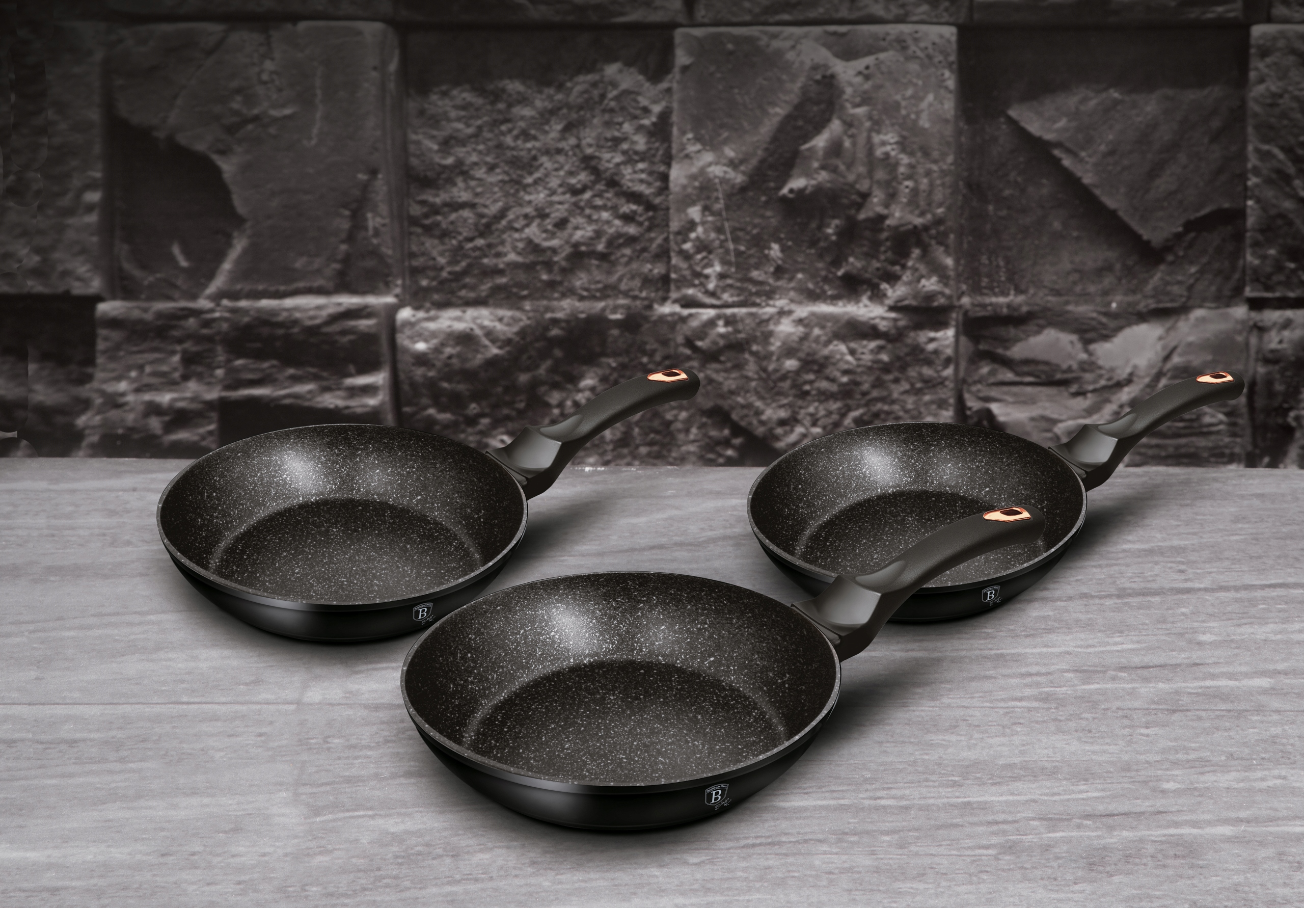 Bộ 3 chảo Berlinger Haus BH/6158F 3pcs Frypan Set 20 - 24 - 28cm chống dính phủ đá màu đen - Black Rose Collection. Phù hợp mọi đối tượng người dùng, GIÁ SIÊU TỐT Bộ