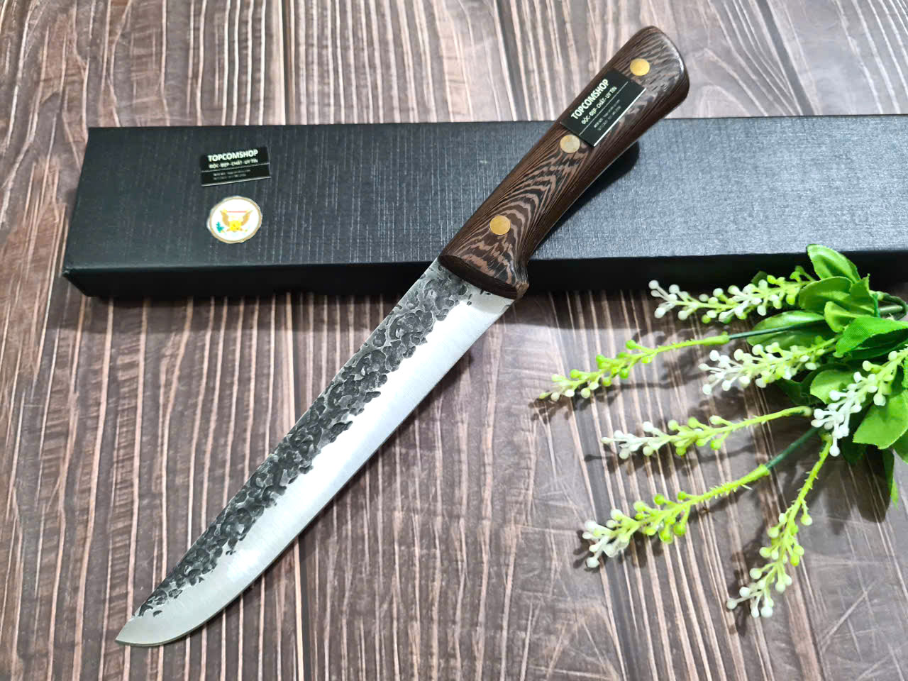 D SỐ 1 : TỔNG DÀI : 27cm, LƯỠI: 14cm,RỘNG : 2.3cm, dày: 2.5mm, CHẤT liệu lưỡi: 5Cr15MOV (thép 5 crom 15 molypden vanadi).Chất liệu CÁN: gỗ Cánh gà,.NẶNG : 1.5 lạng