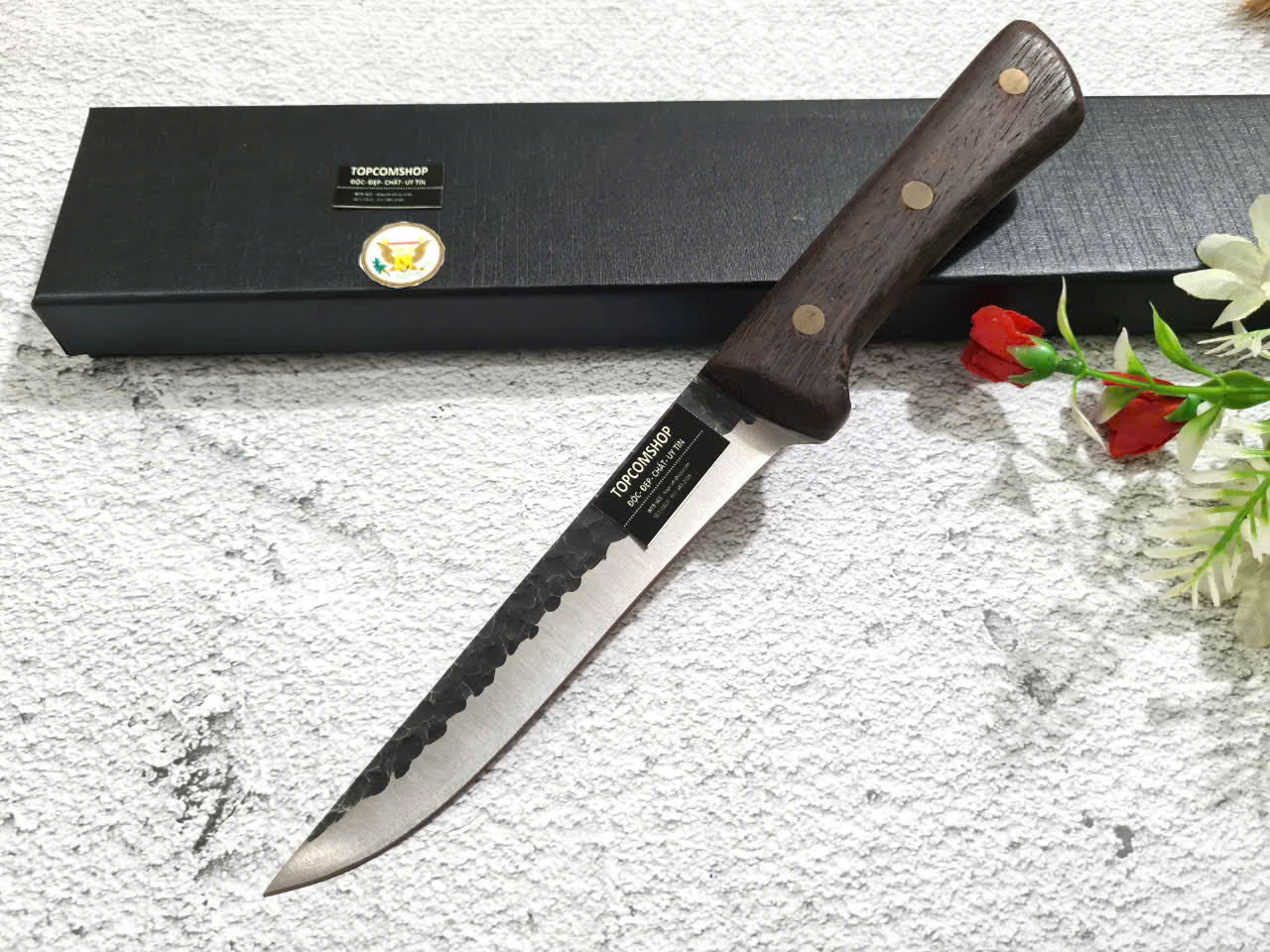 D SỐ 2 : TỔNG DÀI : 30cm, LƯỠI: 17.5cm,RỘNG : 2.9cm, dày: 2.5mm, CHẤT liệu lưỡi: 5Cr15MOV (thép 5 crom 15 molypden vanadi).Chất liệu CÁN: gỗ Cánh gà,.NẶNG : 2 lạng