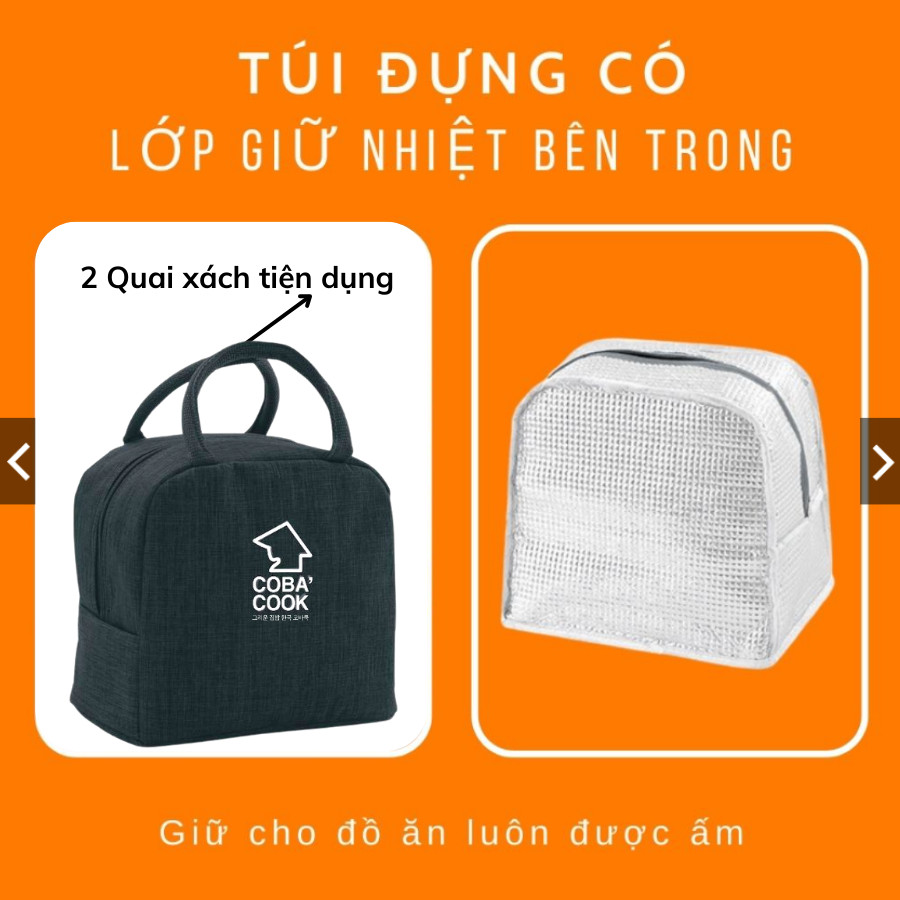 Chất liệu : Thủy tinh chịu nhiệt,nắp nhựa PP Màu sắc : Trắng trong Dung tích : Bộ hộp cơm gồm 2 hộp chữ nhật 370ml +1 túi giữ nhiệt Thương hiệu : COBA'COOK Hộp