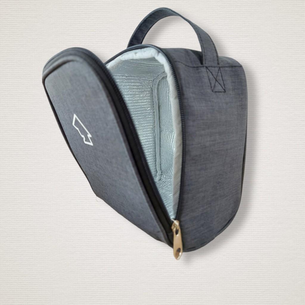 Túi thiết kế phong cách mới , kết hợp 2 khóa kéo tiện dung, dễ dàng lấy hộp thủy tinh từ trong túi ra bên ngoài