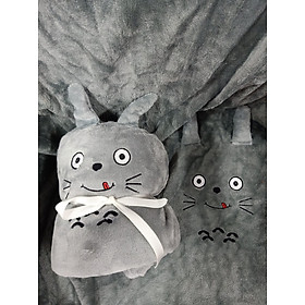 Set chăn gối văn phòng 2 in 1 hình mèo dễ thương, bộ chăn mền kèm gối ngủ trưa đi ô tô xe hơi