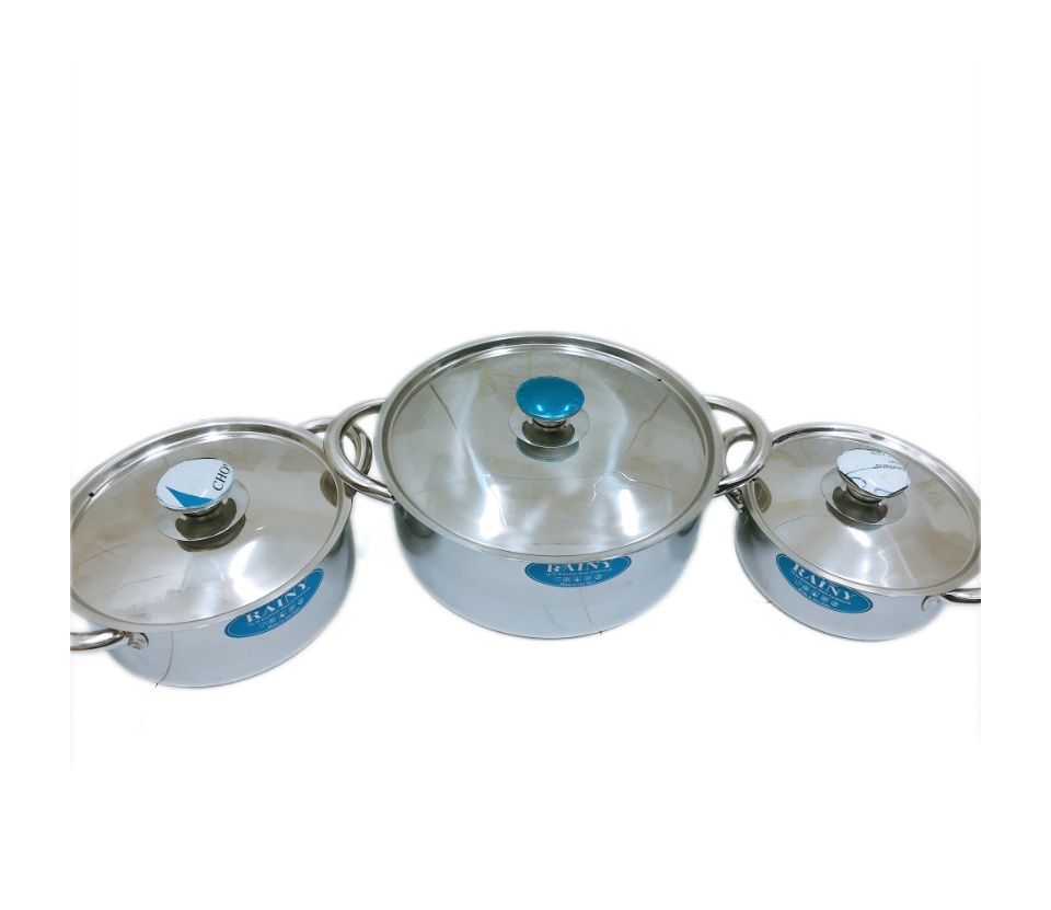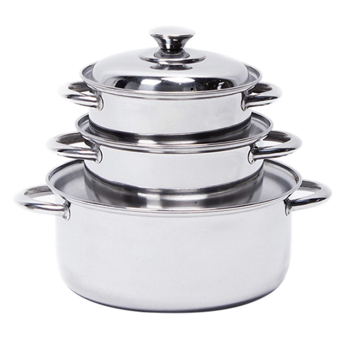 Bộ sản phẩm gồm 3 nồi với các kích thước khác nhau, đường kính nồi lần lượt là: 16cm, 18cm và 24cm. Bạn có thể hầm, nấu nhiều thực phẩm khác nhau để tạo ra những món canh nóng hổi hay món chè ngọt lịm cho cả gia đình. Bộ nồi inox có thể sử dụng trên bếp từ.