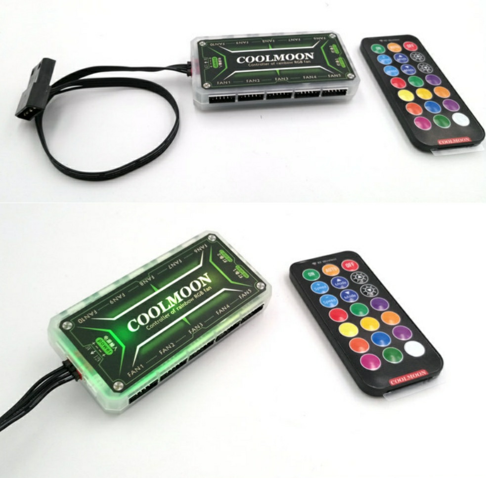 Bộ hub quạt tản nhiệt Coolmoon RGB Phiên bản nâng cấp đáng giá của dòng phụ kiện coolmoon. Bộ hub tích hợp thêm đèn led chế độ RGB. 1 hub gắn được 10 quạt và