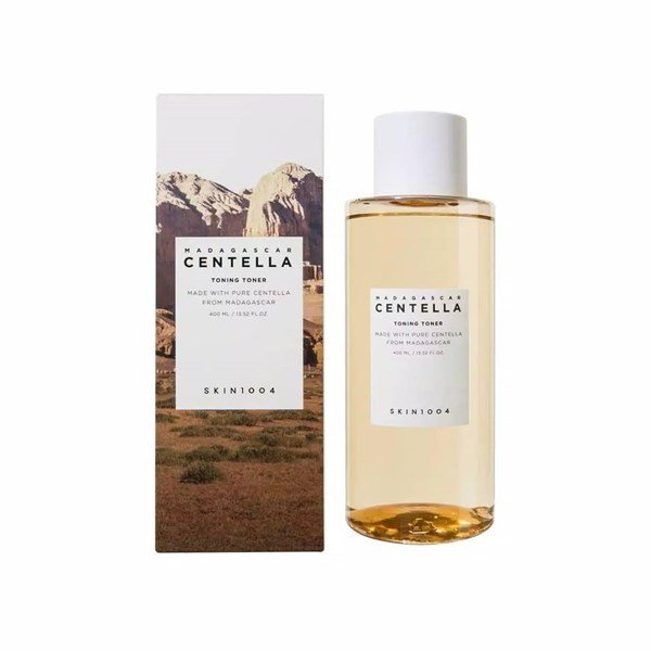 - Tăng cường sức khỏe và bảo vệ làn da khỏi tác hại của môi trường Sản phẩm có mùi thơm nhẹ nhàng, dễ chịu giúp bạn thoải mái hơn khi sử dụng. Nước Hoa Hồng Rau Má Skin 1004 Madagascar Centella Asiatica Toning Toner Của thương hiệu nổi tiếng Skin1004 là loại toner với nhiều chức năng dành cho da đang được hội chị em ưa chuộng. Sản phẩm với 84% thành phần chiết xuất từ rau má giúp nuôi dưỡng làn da khỏe mạnh, đặc biệt an toàn cho da nhạy cảm. Chứa 15 loại thành phần lành tính: chiết xuất rau má, Axit Hyaluronic, Betaine, PHA, Niacinamide, Adenosine,… làm dịu làn da tổn thương do tác động của môi trường, loại bỏ tế bào chết, cải thiện độ đàn hồi cho da đồng thời cải thiện tông da trắng sáng hiệu quả. Phù hợp với mọi loại da đặc biệt là da nhạy cảm, da mụn. CÔNG DỤNG Độ pH 5.3 tương tự với độ Ph trên da nên không gây kích ứng. Thành phần PHA có tính năng tẩy da chết nhẹ giúp loại bỏ tế bào chết đã tích tụ lâu ngày trên bề mặt da Mang lại cho bạn làn da căng mịn và tươi mát. Bổ sung độ ẩm cho da với khả năng chăm sóc làn da dịu nhẹ. Tăng cường hàng rào bảo vệ da cho bạn một làn da mịn màng căng tràn sức sống. Nâng tông da sáng mịn hơn. HƯỚNG DẪN SỬ DỤNG
