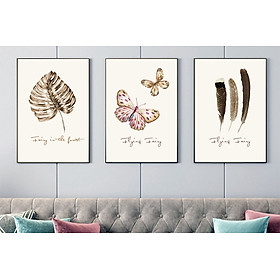 Tranh in trên vải canvas hội họa Kích thước: 40x60cm x3 Tấm lưng bằng gỗ MDF nhập khẩu. Khung vật liệu composite. Không bị ảnh hưởng bởi nước, ẩm mốc. Tặng kèm đinh 3 chân