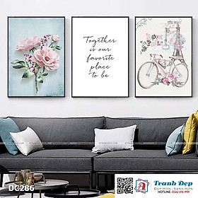 Tranh in trên vải canvas hội họa Kích thước: 40x60cm x3 Tấm lưng bằng gỗ MDF nhập khẩu. Khung vật liệu composite. Không bị ảnh hưởng bởi nước, ẩm mốc. Tặng kèm đinh 3 chân