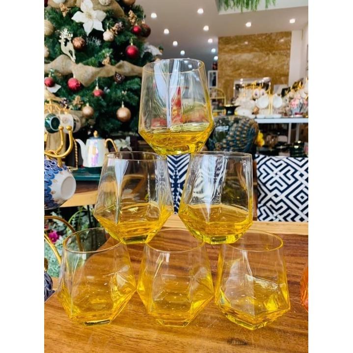 ✨Bộ 6 ly thủy tinh chịu nhiệt cao cấp dùng uống nước hoặc rượu tây vân kim cương ghi