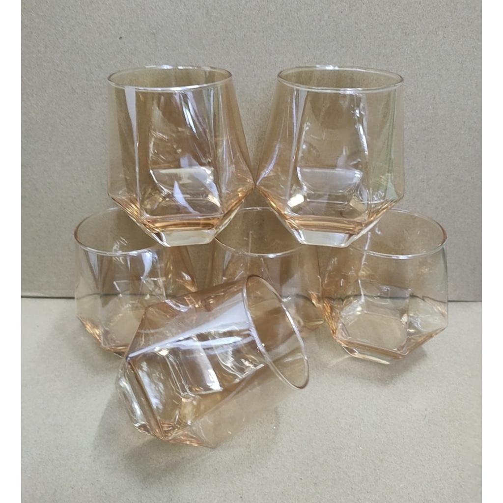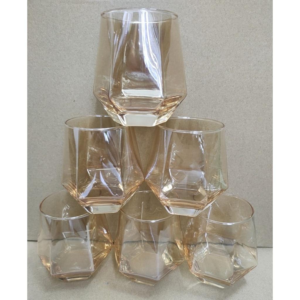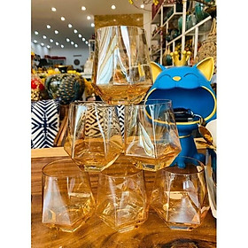 ✨Bộ 6 ly thủy tinh chịu nhiệt cao cấp dùng uống nước hoặc rượu tây vân kim cương vàng