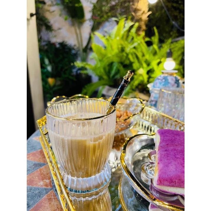 ✨Bộ 6 ly thủy tinh chịu nhiệt cao cấp dùng uống nước vân sọc viền vàng miệng loe