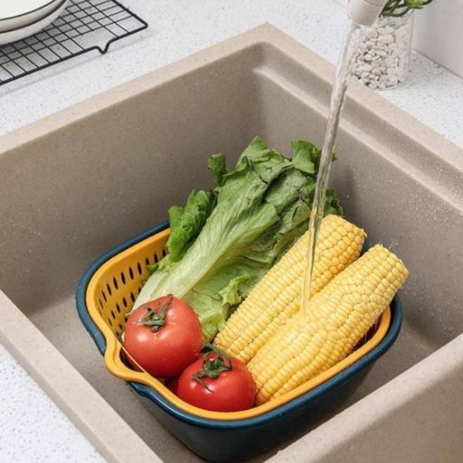 » Kết hợp 2 loại rổ thành một đôi, một chiếc có công dụng để ráo, 1 chiếc để đựng nước, mang lại hiệu quả mỗi khi ngâm, rửa
