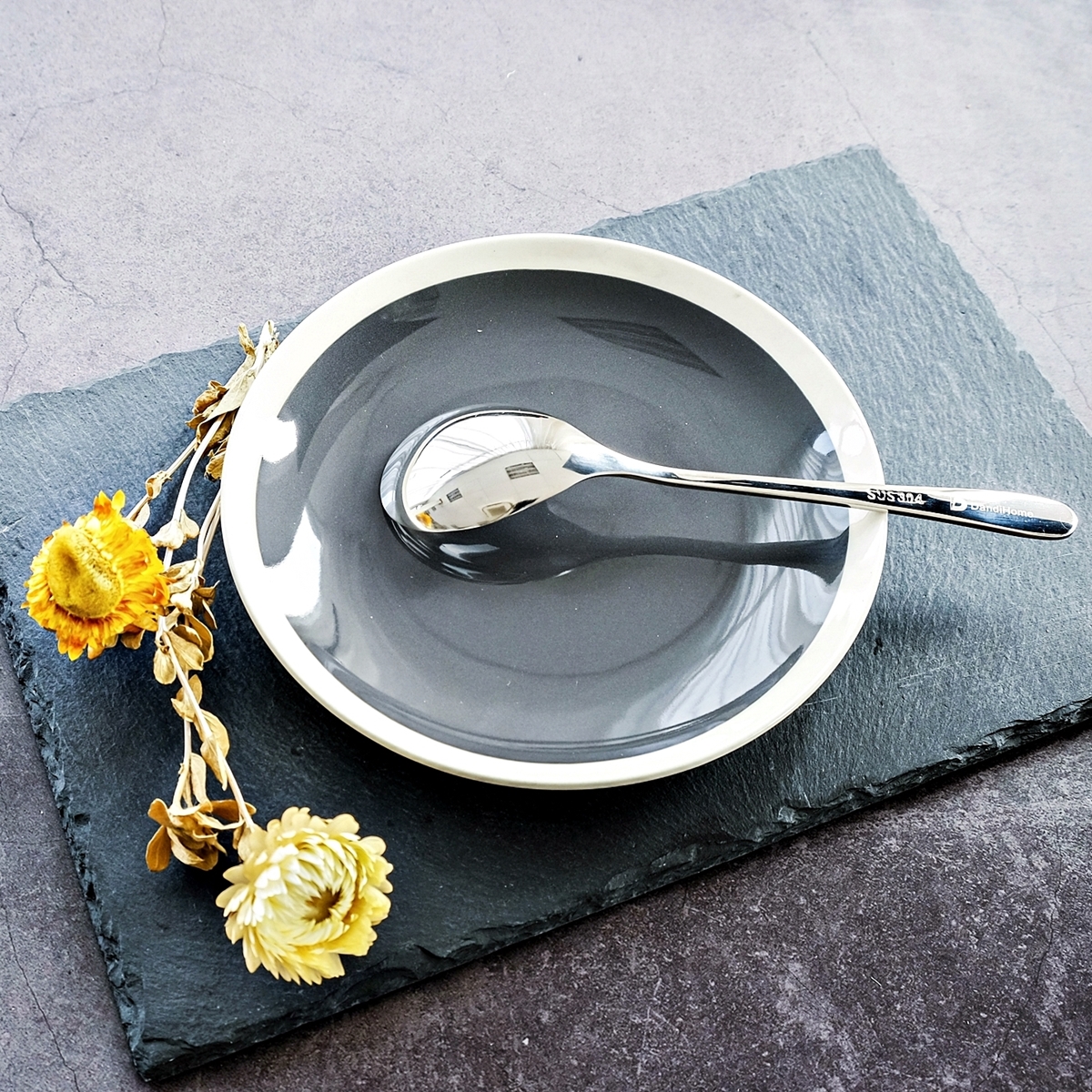 Cán thìa dài được thiết kế cong vừa đủ tạo cảm giác thoải mái khi sử dụng.