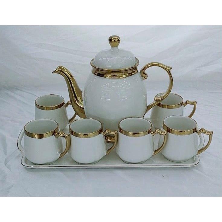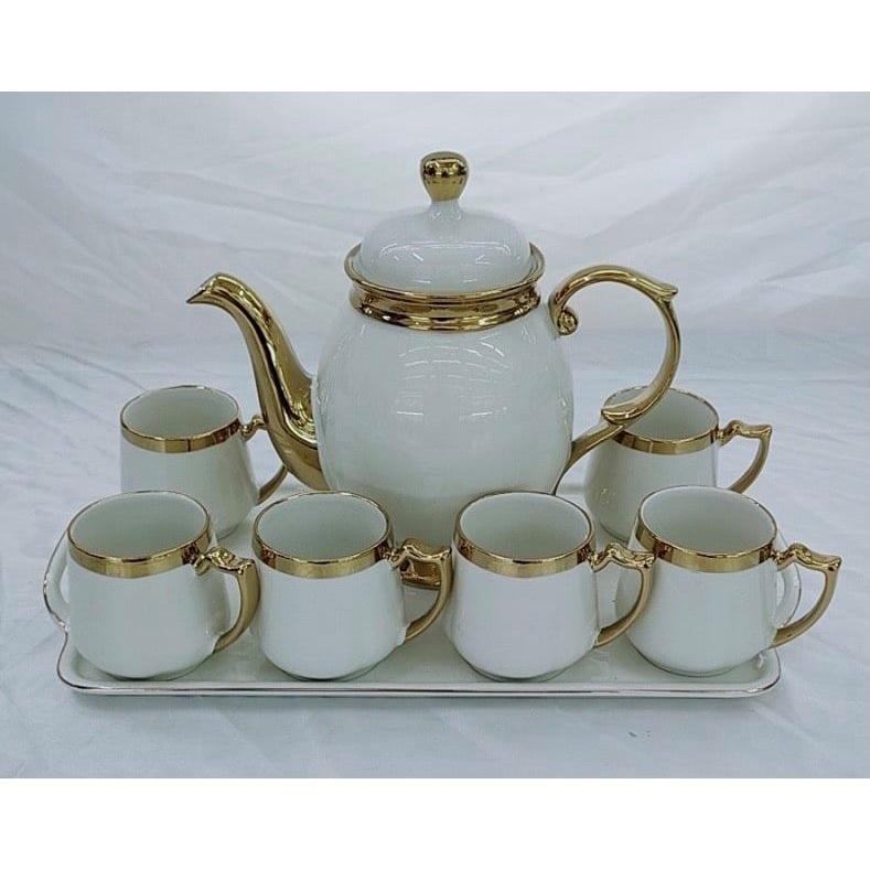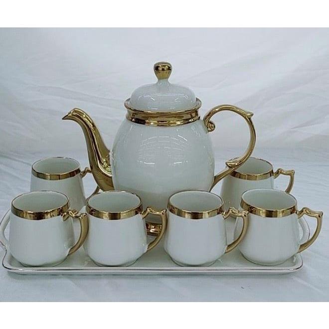 Bộ ấm chén Bát Tràng men trắng viền vàng kim dáng phú quý kèm hộp làm quà tặng sang trọng Với chất men trắng tinh khôi không tỳ vết, từ chén, đĩa, ấm, nắp